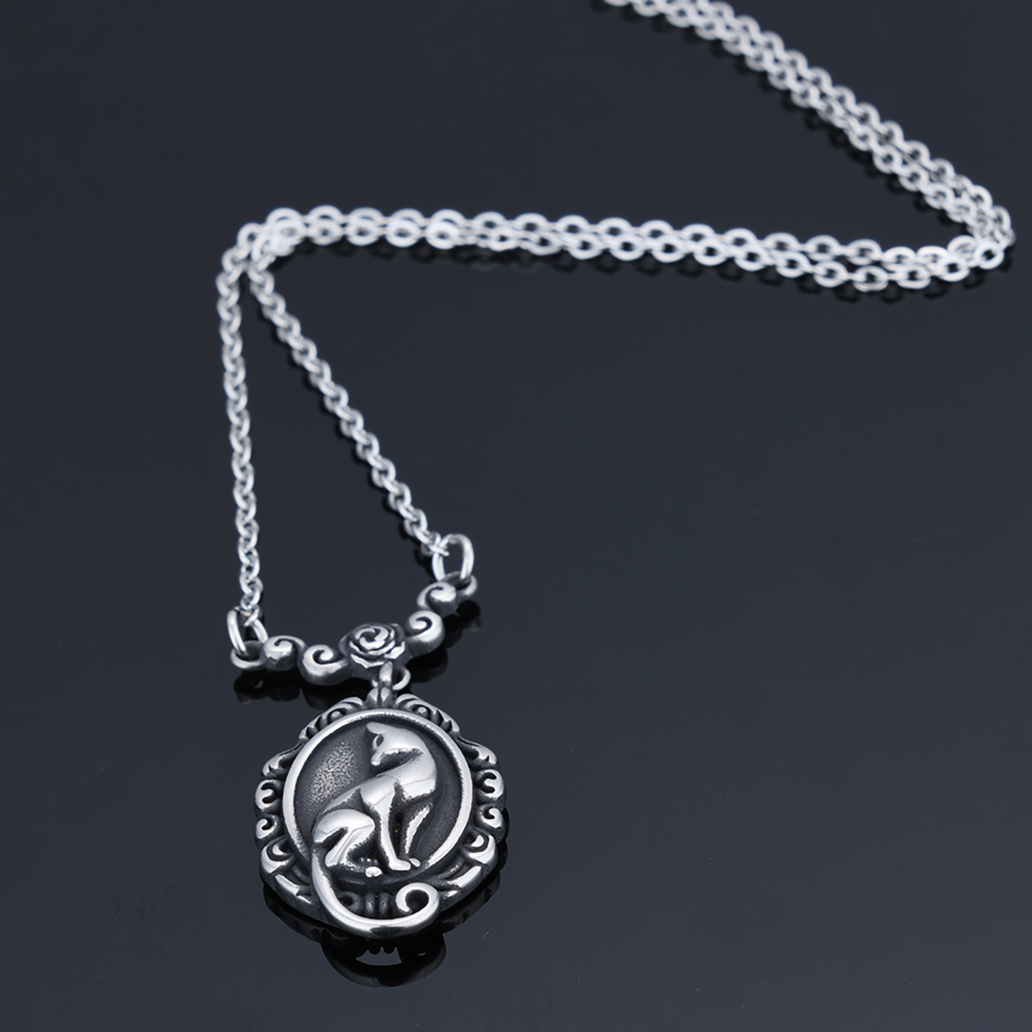 3D Cat Wreath Pendant Necklace In Titanium Steel