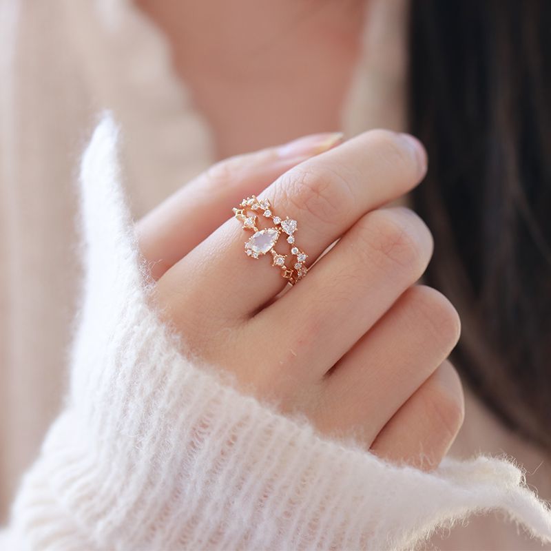 Color: Early Snow Petal Ring, V-Shaped Ring